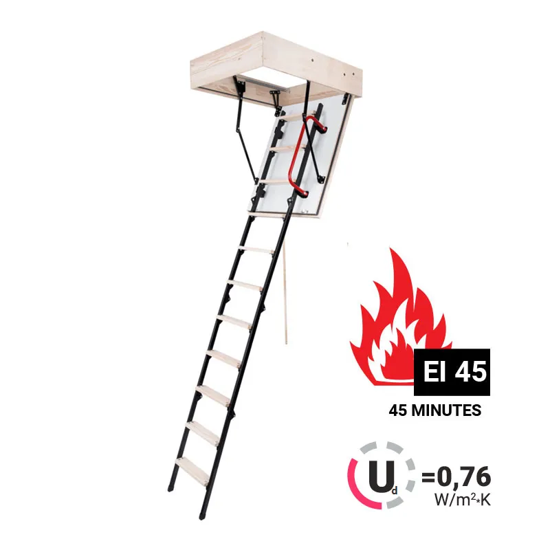 Модель EXTRA идеальна для условий, когда чердак плохо утеплен и требует дополнительной теплоизоляции. По контуру короба одинарный уплотнитель. Лестница имеет нескользящие ножки, которые идеально прилегают к земле, предотвращают появление царапин на поверхности пола и придают эстетичный вид после ее резки. 4-х секционная складная чердачная лестница. Высота потолка до 3350 мм.