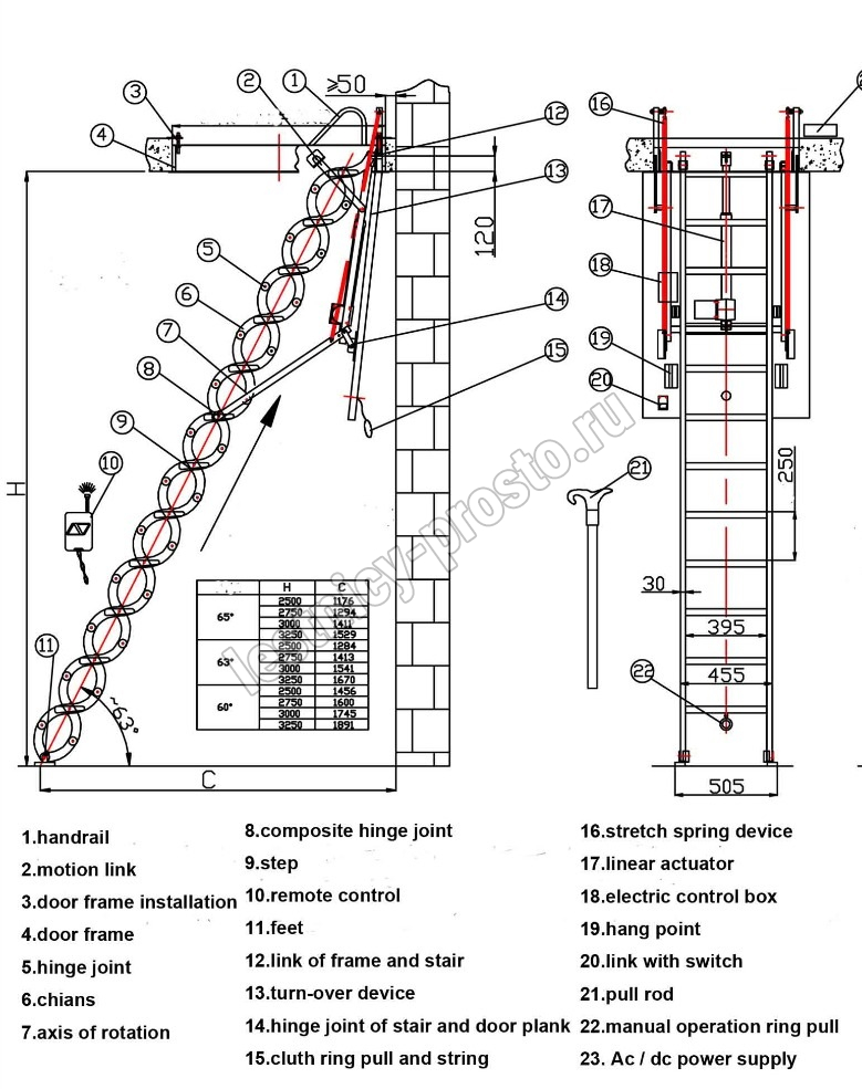 Чердачная лестница ZiKco с мотором, ножничного типа.