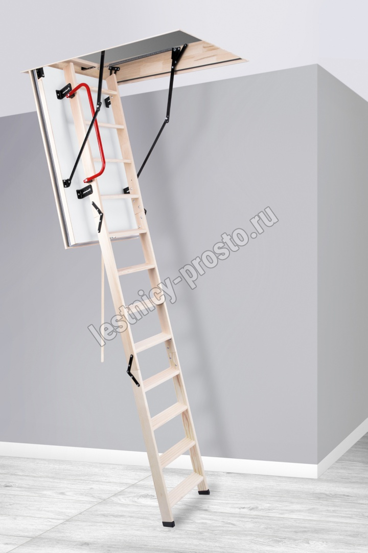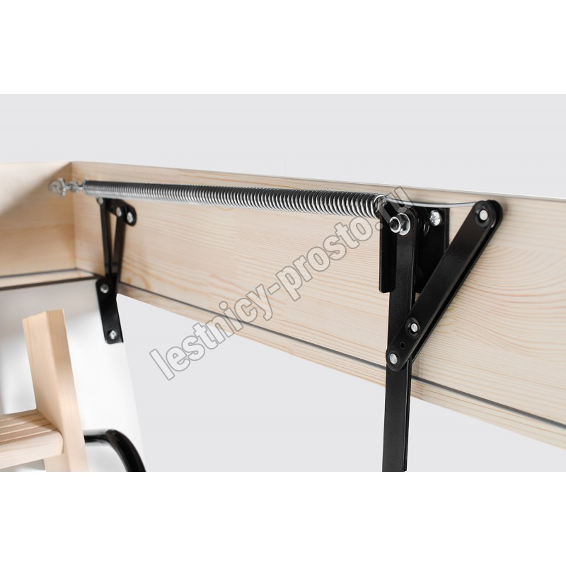 Лестница EI45 POLAR отличается тройным уплотнением, включая одинарное противопожарное уплотнение и люк толщиной 86 мм. Крышка люка утеплена пенопластом, облицована с двух сторон ДСП белого цвета.