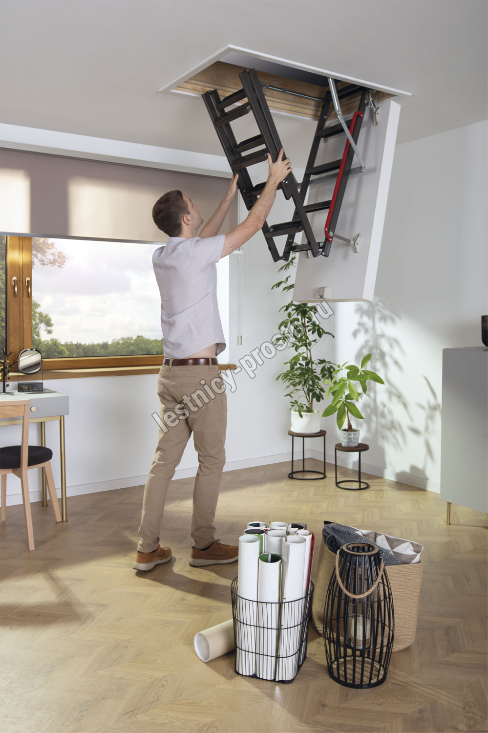 Супертеплоизоляционная металлическая чердачная лестница FAKRO LMT 60×130 см, h-305 см