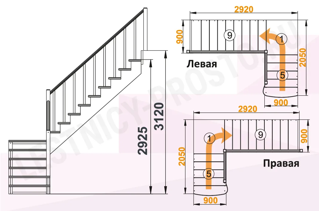 | Лестница из сосны К-002М/1 с подступёнками под покраску |