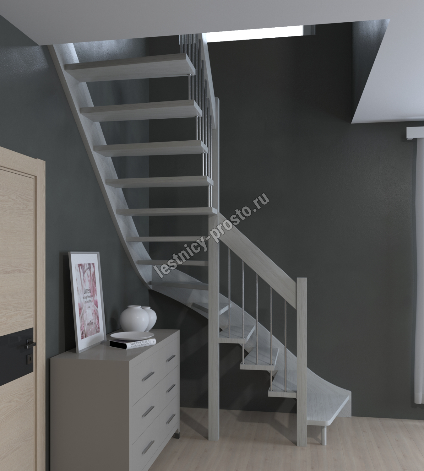 Лестница Prosto Console г-образная забежная ясень, h280 см