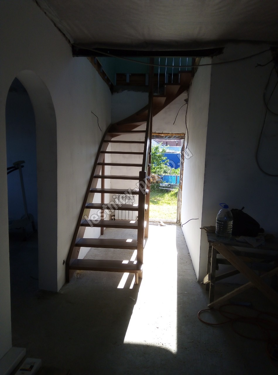 возможна комбинированная лестница: из сосны (ступени бук, ясень, дуб);