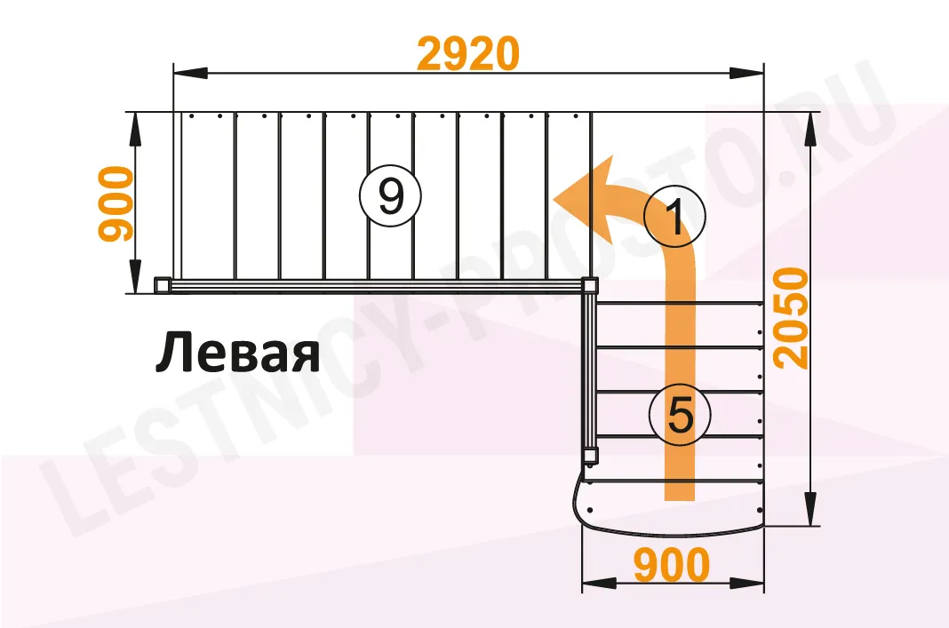 Лестница К-002М/3 с поворотом налево