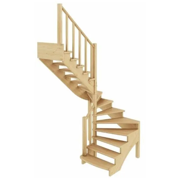 Ступени и поручень лестницы изготовлены из сращенного бука; тетивы, столбы, балясины - из сосны. Возможно изготовление данной модели полностью из бука. Базовый комплект включает в себя деревянные элементы лестницы и ограждения без какого-либо покрытия.