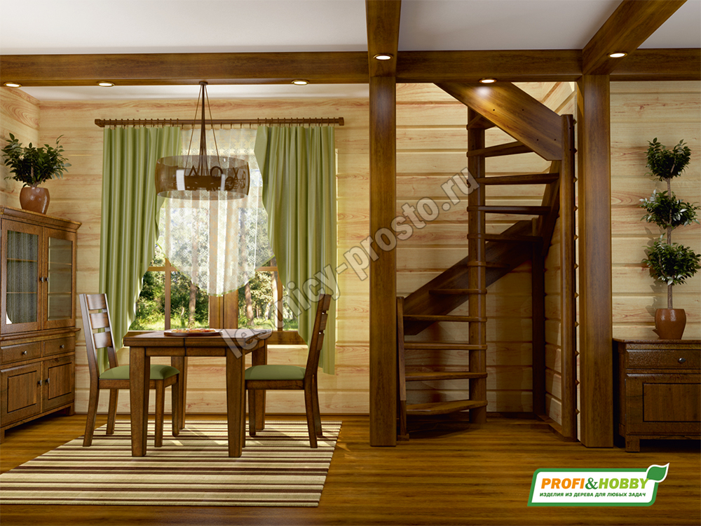 Ступени и поручень лестницы изготовлены из бука, остальные элементы из сосны.