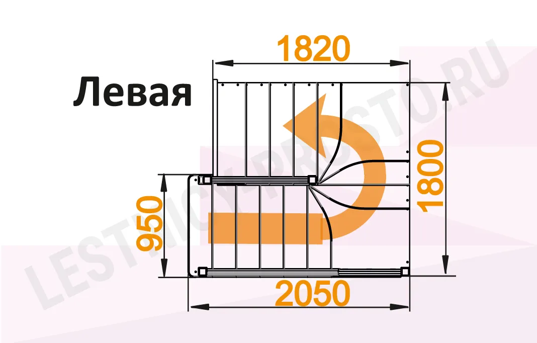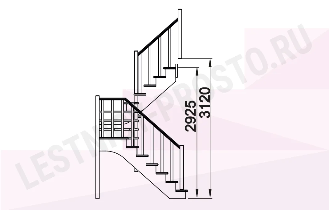 Схема лестницы К-034М с поворотом налево