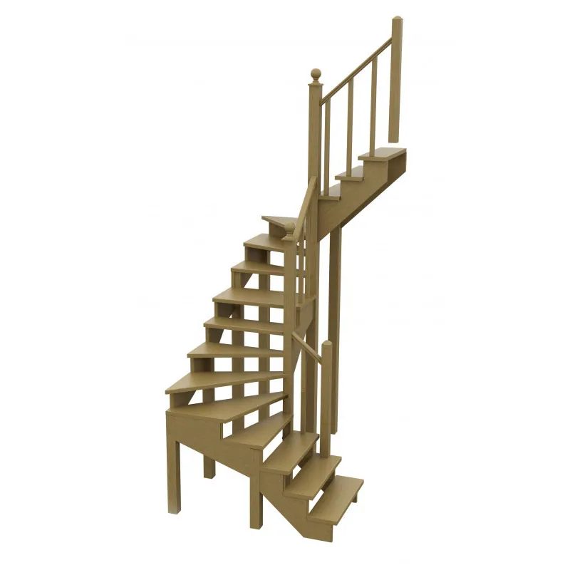 Базовый комплект включает в себя деревянные элементы лестницы и ограждения без какого-либо покрытия.