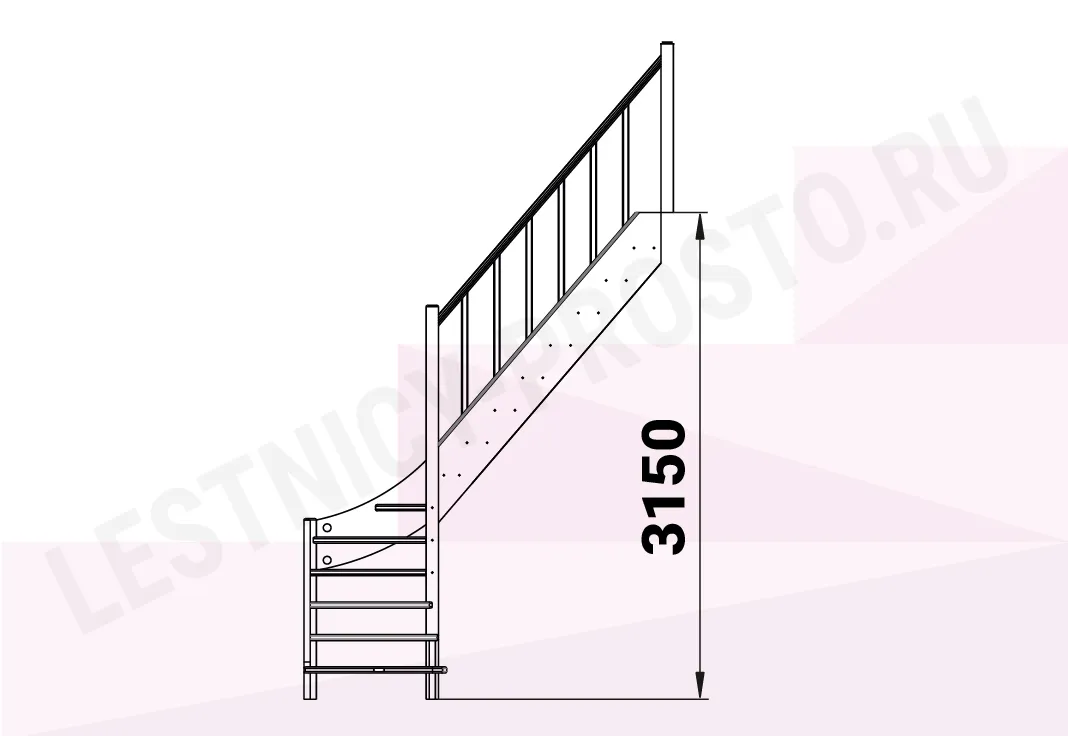 Базовый комплект включает в себя деревянные элементы лестницы с подступенками и ограждения без какого-либо покрытия.