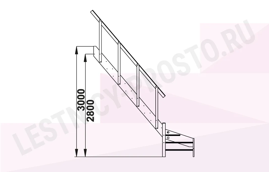 Недорогая простая лестница, хорошо использовать как временный вариант. В комплекте поручень.