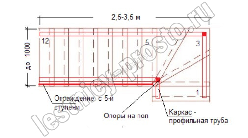 В комплекте на каждую ступень лестницы приходится 1 стойка.<br>