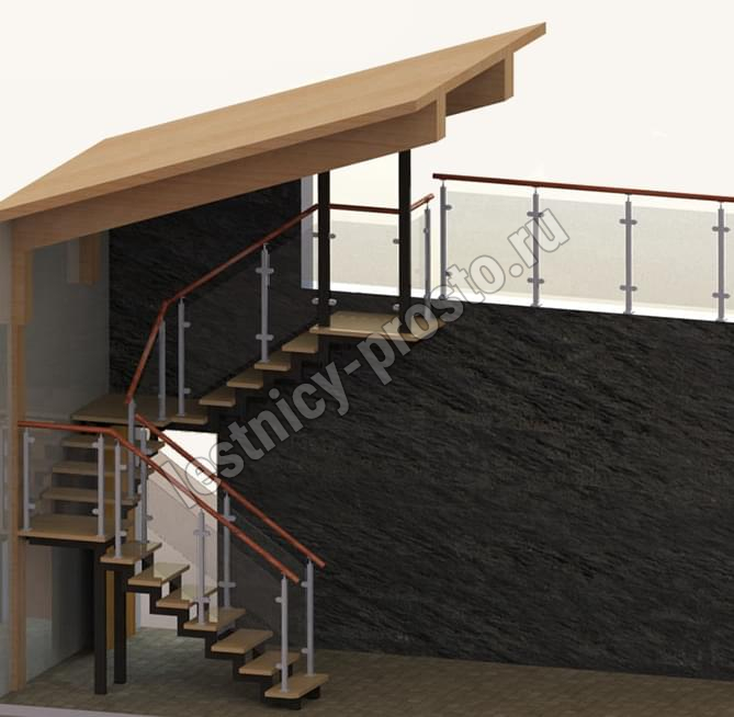 Лестница Prosto Double 50×100 п-образная, ступени лиственница