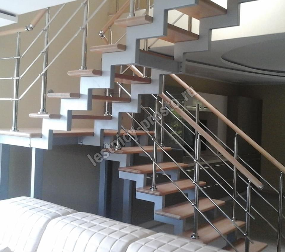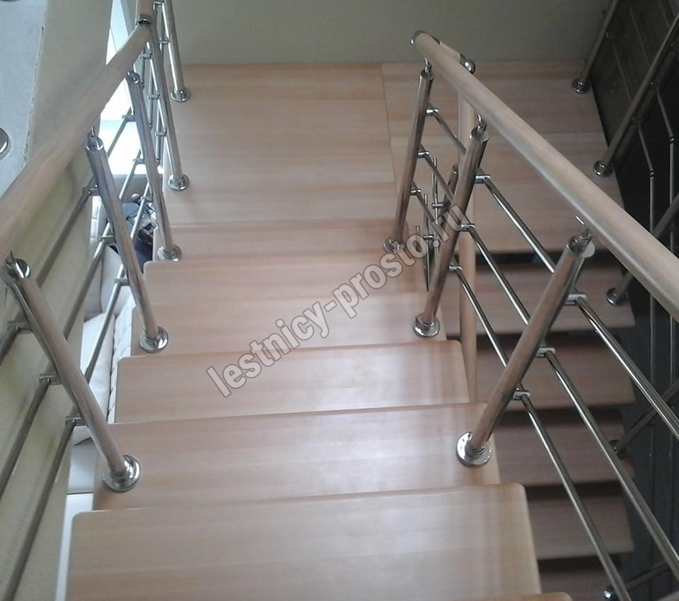 Ступени этого варианта лестницы изготовлены из сращенной лиственницы категории АВ, без какого-либо покрытия.