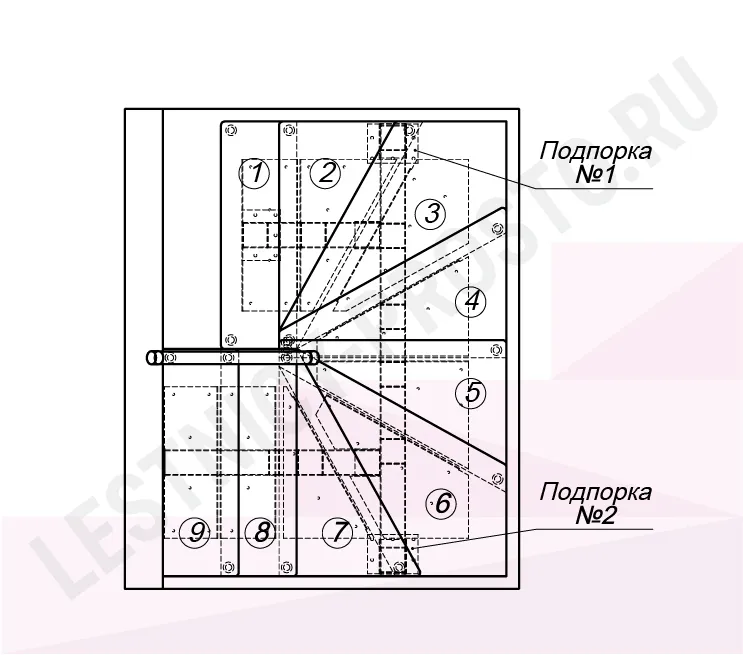 Высота лестницы 2025 - 2250 (9 ступеней) мм
