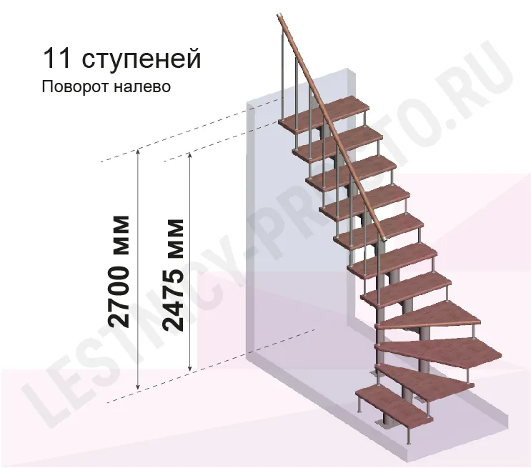 Высота лестницы 2475 - 2700 (11 ступеней) мм
