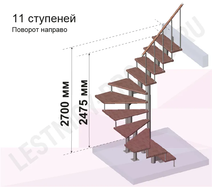 Высота лестницы 2475 - 2700 (11 ступеней) мм