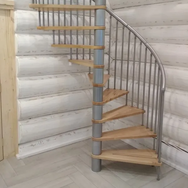 Винтовая лестница SPIRAL WOOD d120 см. белая, лакированный дуб