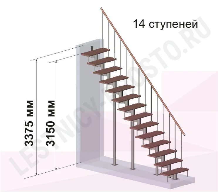 Модульная лестница PROSTO Module прямая/ h337.5 см