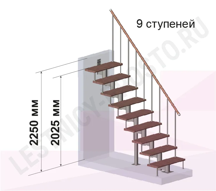 Модульная лестница PROSTO Module прямая/ h225 см