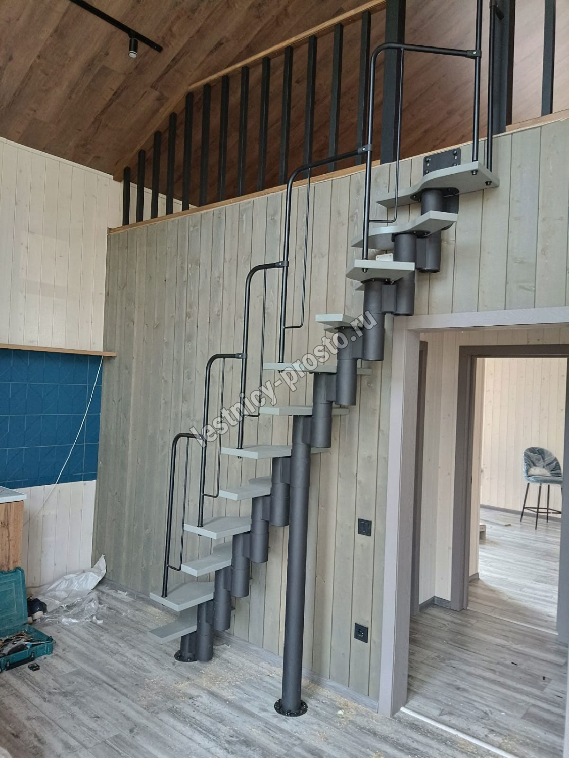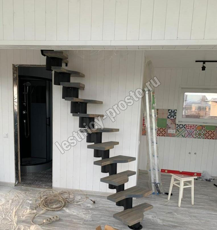 Лестница Prosto Urban Black гусиный шаг 700 мм, h234-336 см (13 ступеней), бук