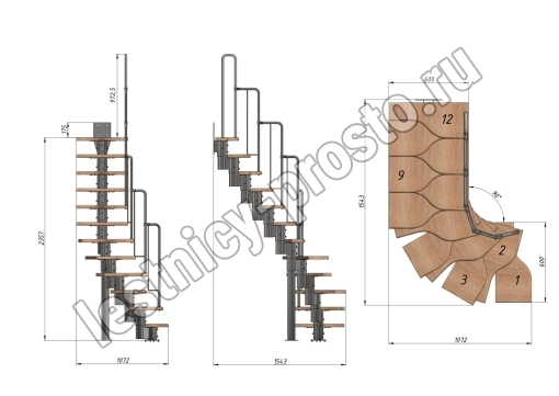 Высота лестницы 2160 - 3120 (12 ступеней) мм