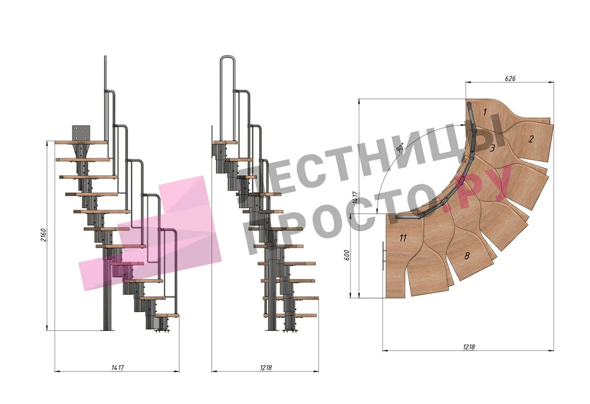 Лестница Prosto Urban Black гусиный шаг 600 мм/ Ступени из берёзы мультиплекс