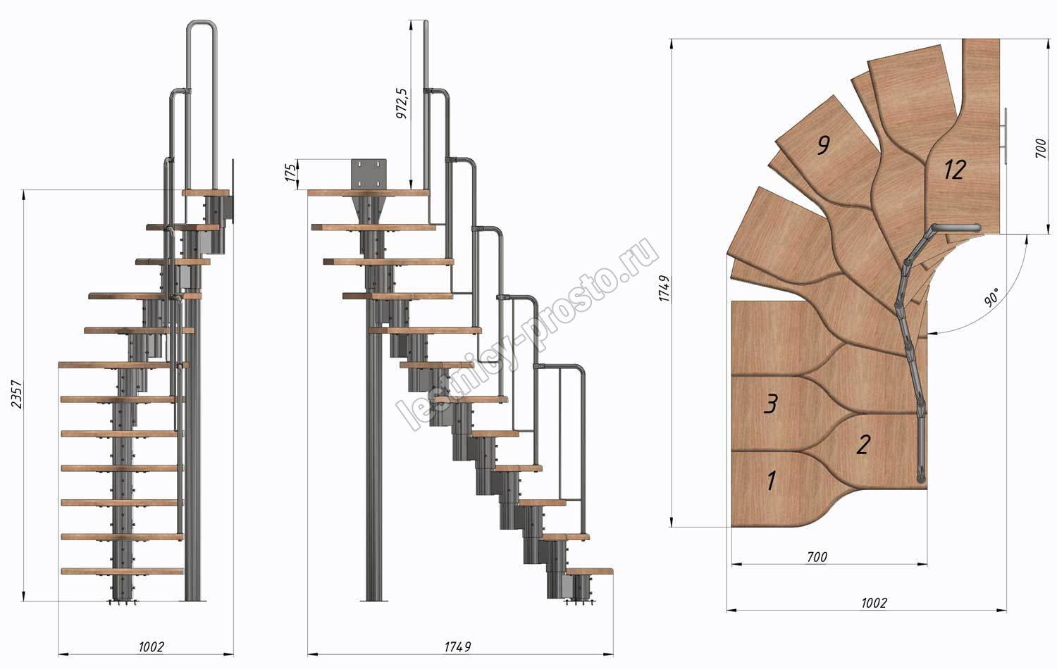 Высота лестницы 2160 - 3120 (12 ступеней) мм