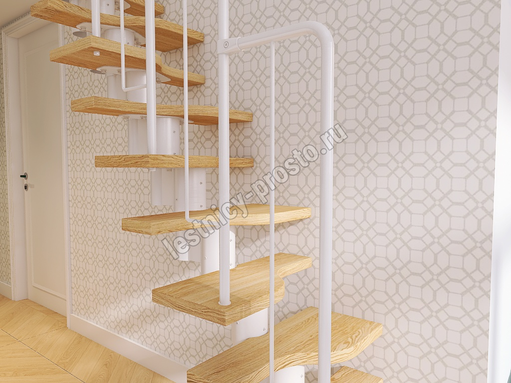 Лестница Prosto Urban White гусиный шаг 700 мм, h234-336 см (13 ступеней), берёза мультиплекс