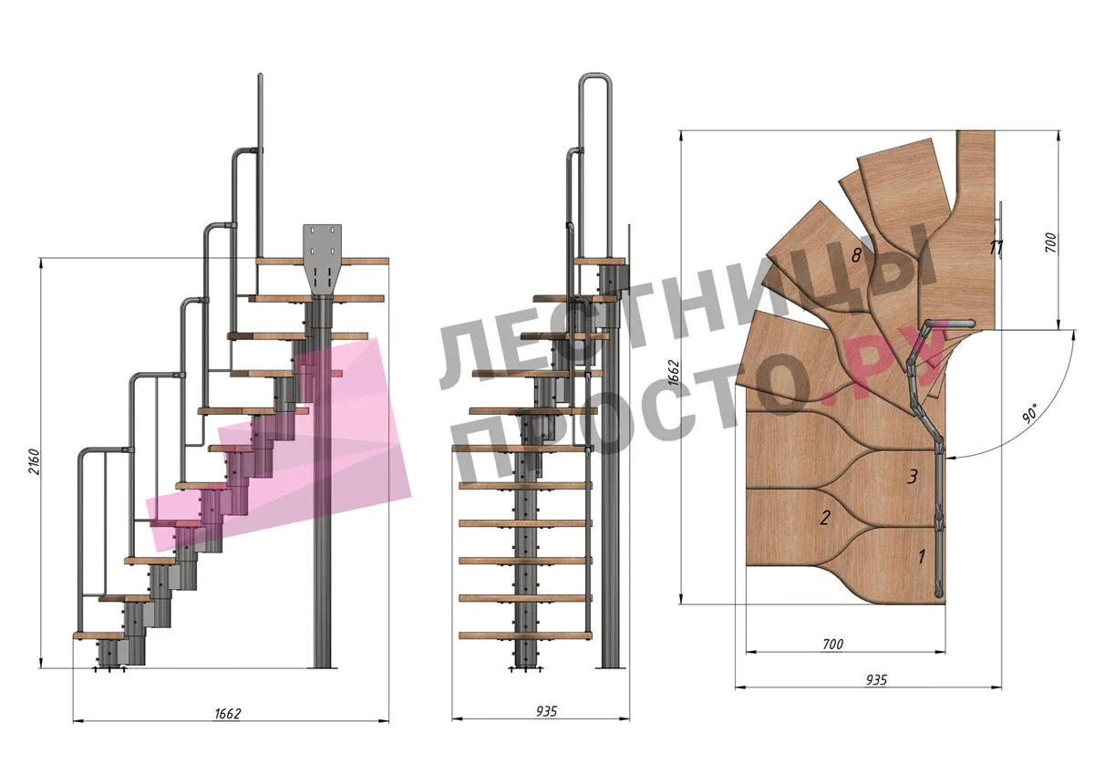 Высота лестницы 1980 - 3600 мм