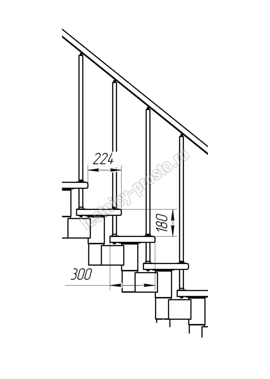Модульная лестница Фаворит 180 2520-2660, Серый, Лиственница, Нержавеющая сталь