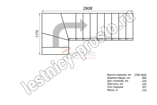 Модульная лестница Фаворит 225 2700-2820, Серый, Бук, Крашеная