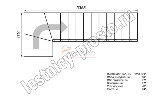 Высота лестницы 3150 - 3290 мм
