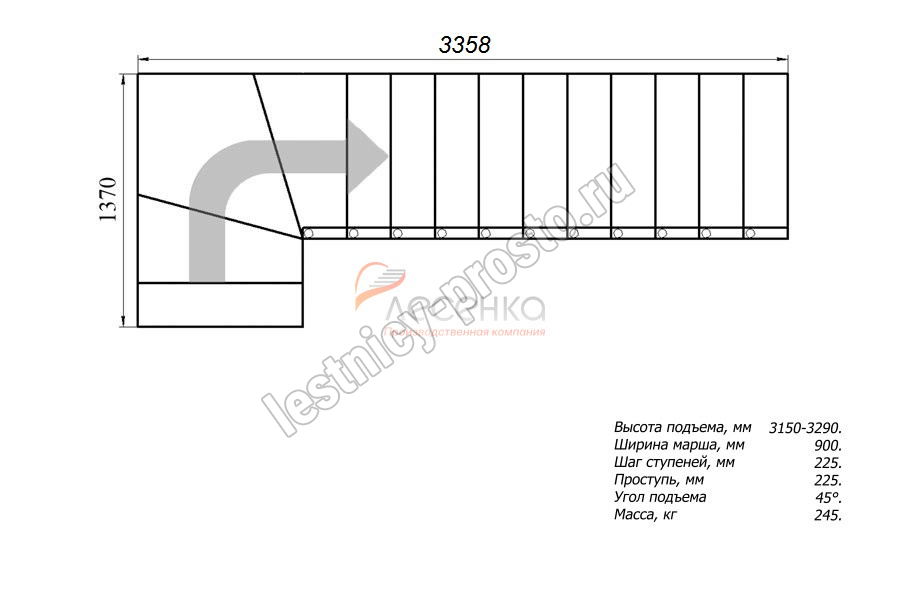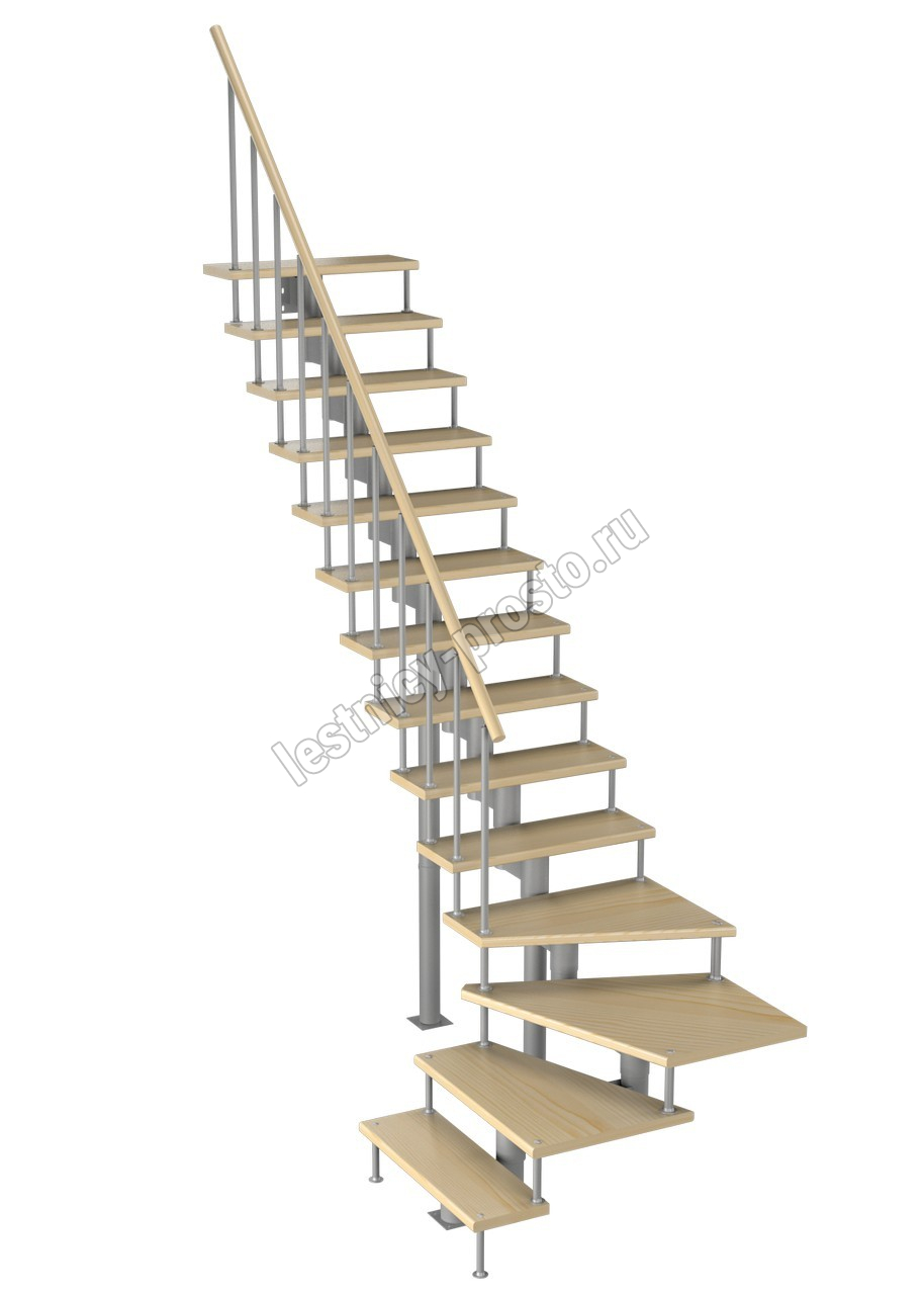 Модульная лестница Фаворит 225 3150-3290, Серый, Сосна, Нержавеющая сталь