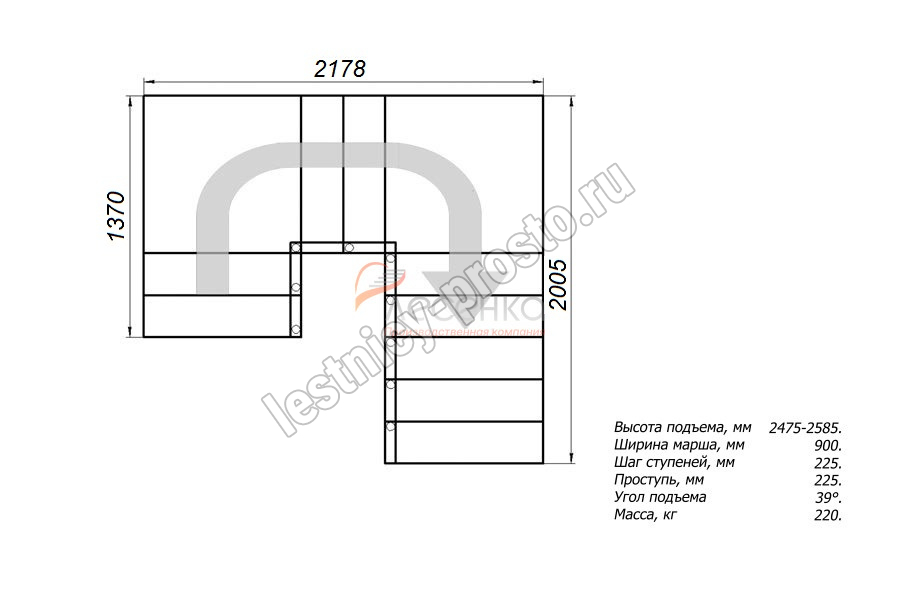 Модульная лестница Комфорт 225 2475-2585, Черный, Бук, Крашеная