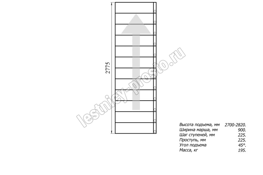 Модульная лестница Стандарт 2700-2820, Черный, Сосна, Крашеная, Без Ступений