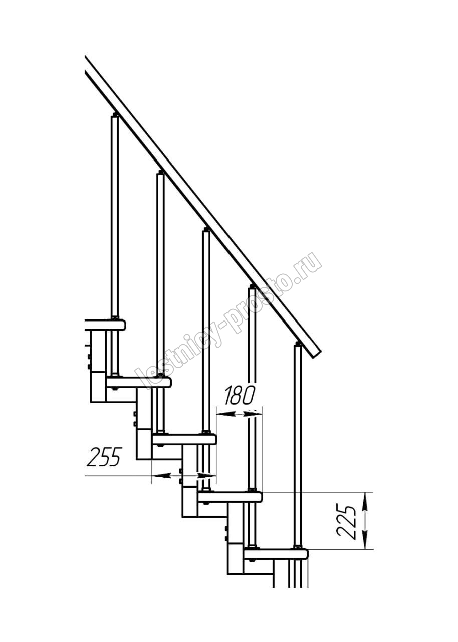 Модульная малогабаритная лестница Компакт 2025-2250, Черный, Сосна, Нержавеющая сталь