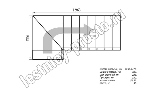 Количество ступеней на первом и втором марше может меняться между собой в зависимости от размера проема, при этом общее количество ступеней не меняется!!!