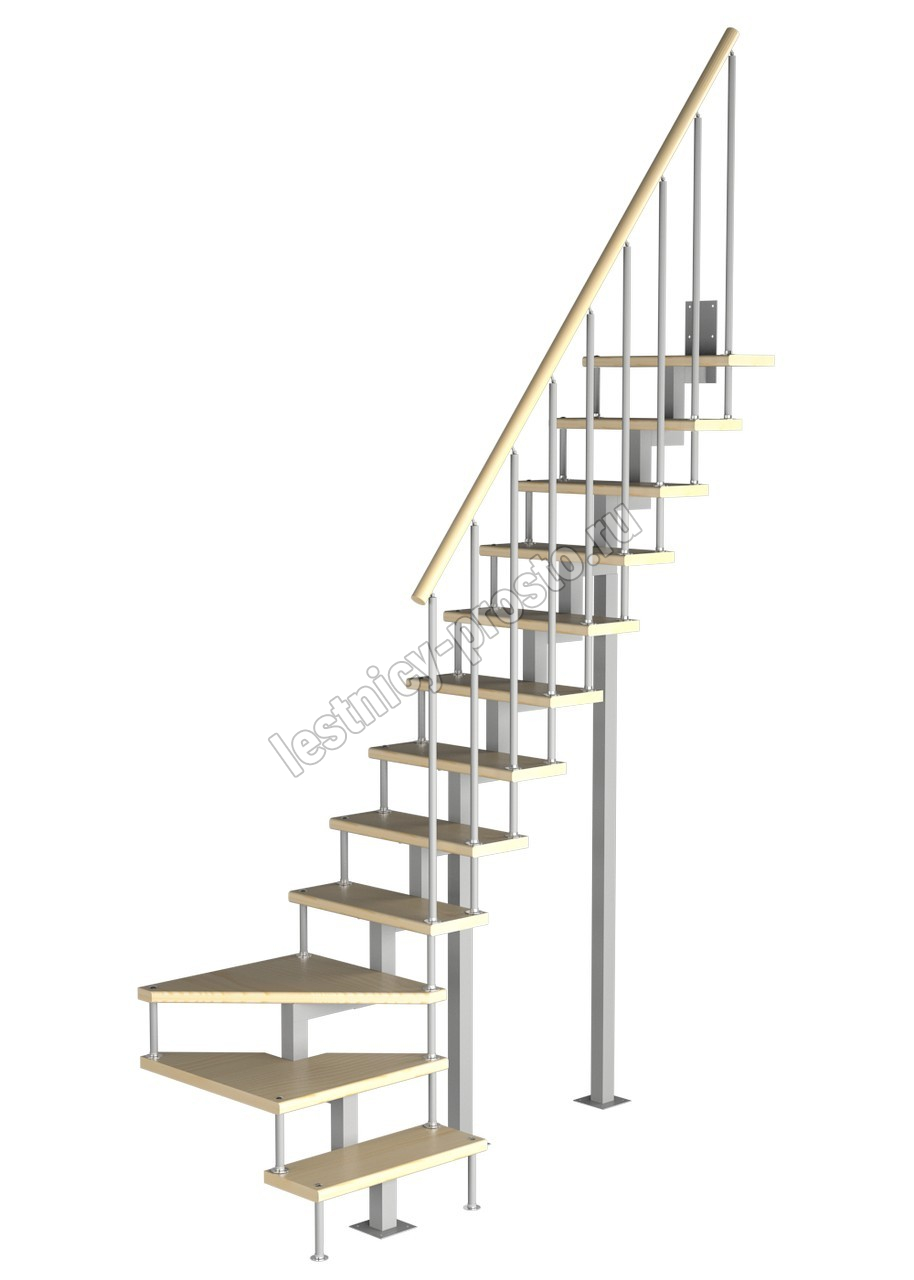 Модульная малогабаритная лестница Компакт 2700-2925, Серый, Лиственница, Крашеная