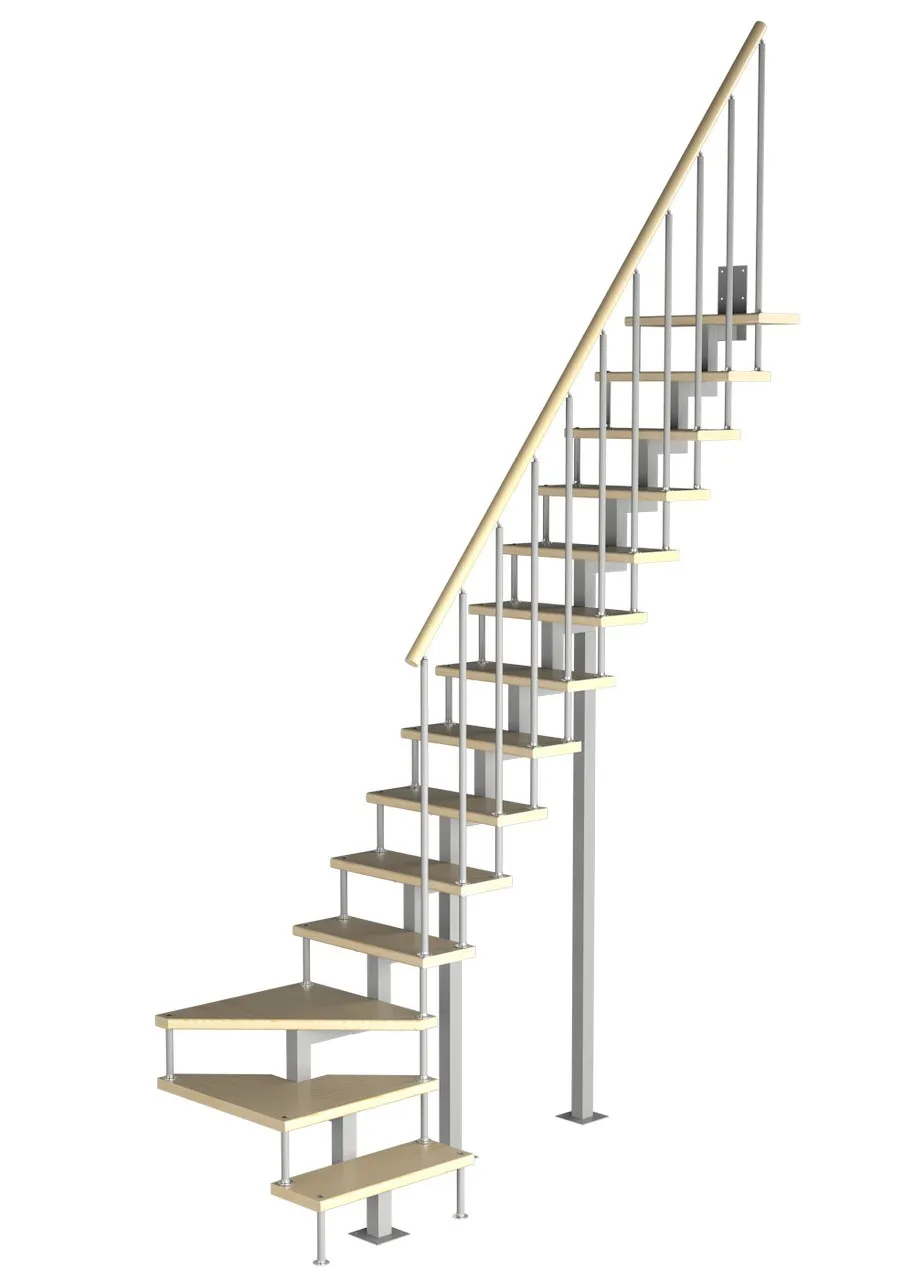 Модульная малогабаритная лестница Компакт 3150-3375, Белый, Сосна, Нержавеющая сталь