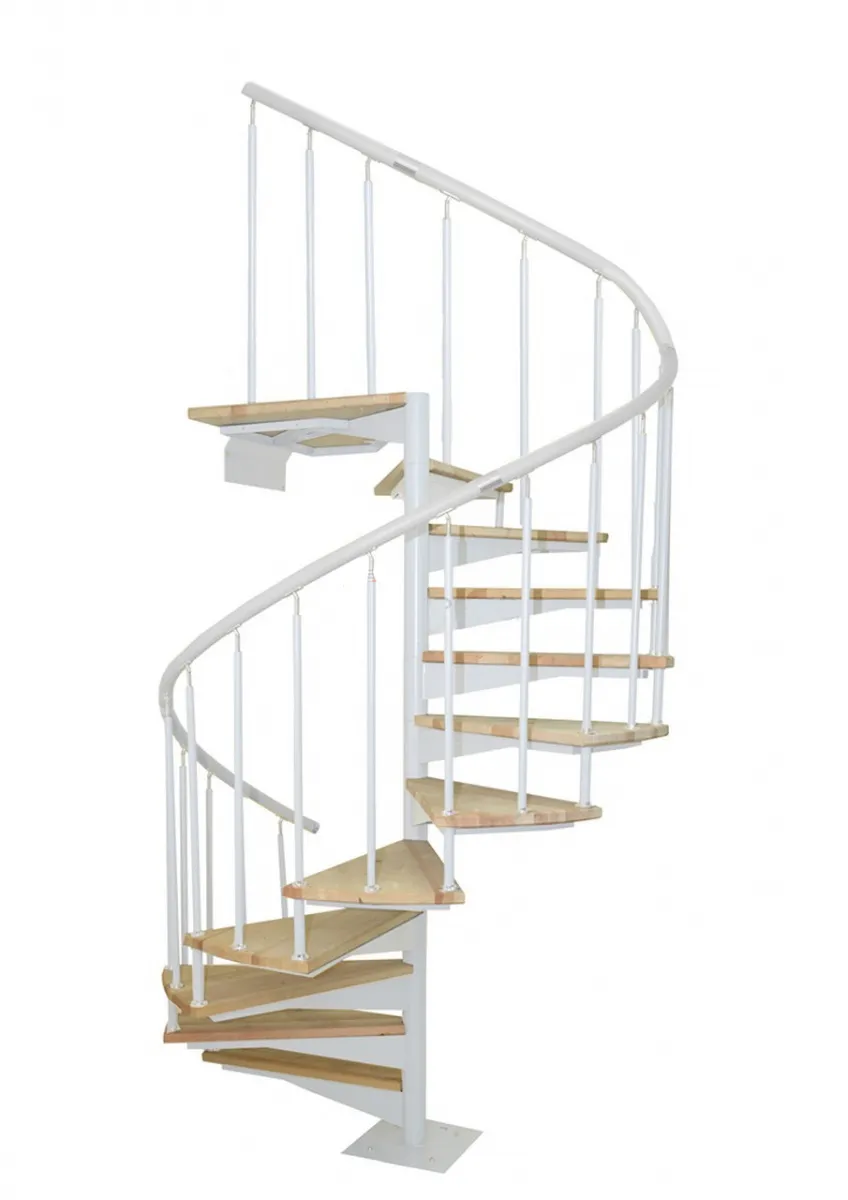 Новинка 2021 года !!! Не имеет аналогов в России по своему надежному конструктиву среди винтовых лестниц. Используемый материал - древесина шлифованная , не окрашенная и металл покрытый порошковой краской. Поручень - пластиковый, уже изогнутый. Цвет поручня в ассортименте.