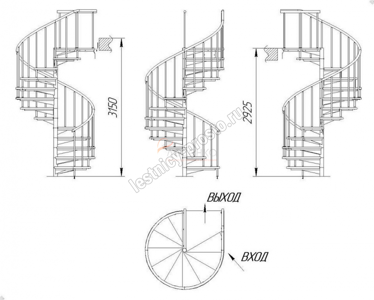 Винтовая лестница ЛЕС-1,8 высота 2925-3150, Черный, Бук
