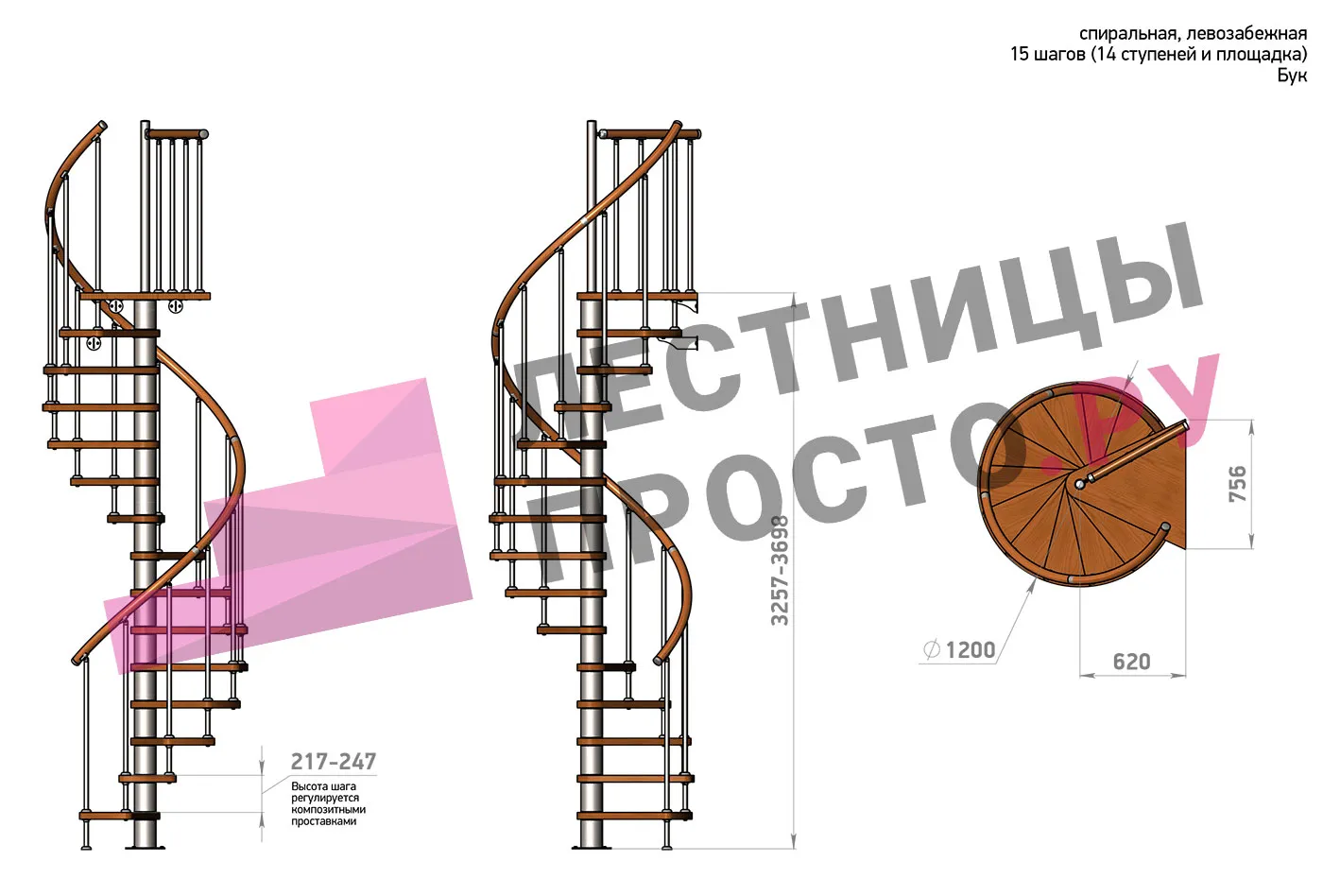 Высота ступеней регулируется с шагом 3 мм. в пределах 217-247 мм., благодаря чему, лестница прекрасно подгоняется под необходимую высоту.
