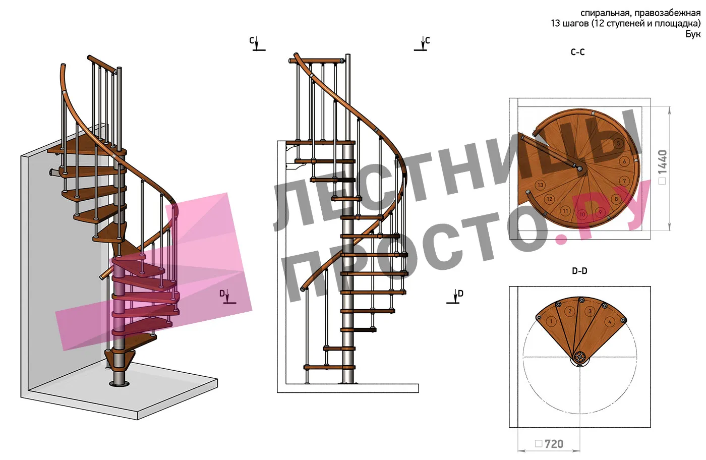 Решение об ориентации поворота принимается при сборке лестницы (комплект собирается и в правозабежную, и в левозабежную лестницу).