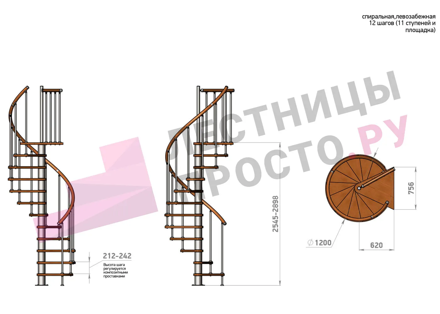 Винтовая лестница Prosto Spiral Black/Высота 2545 - 2898 мм