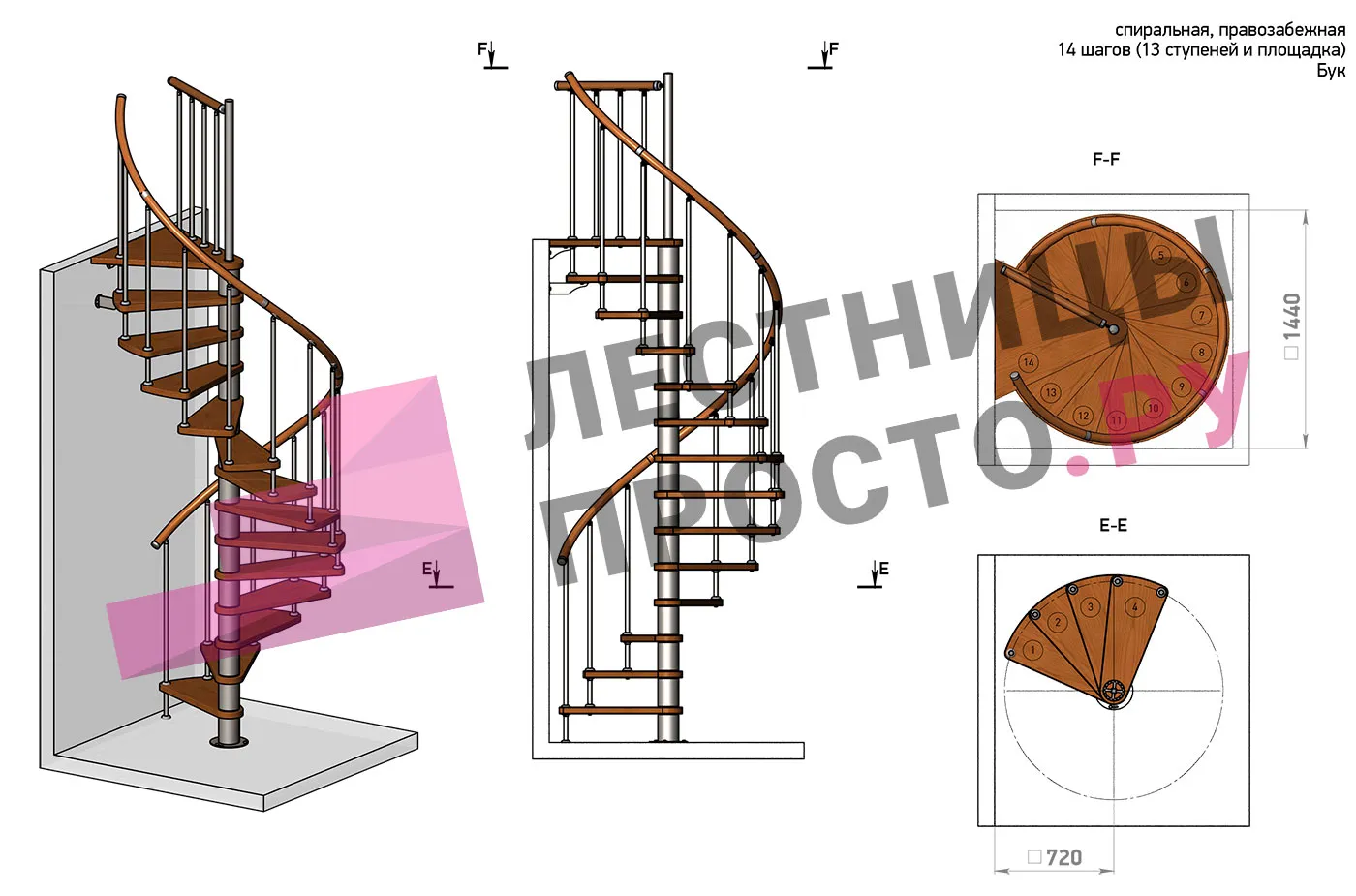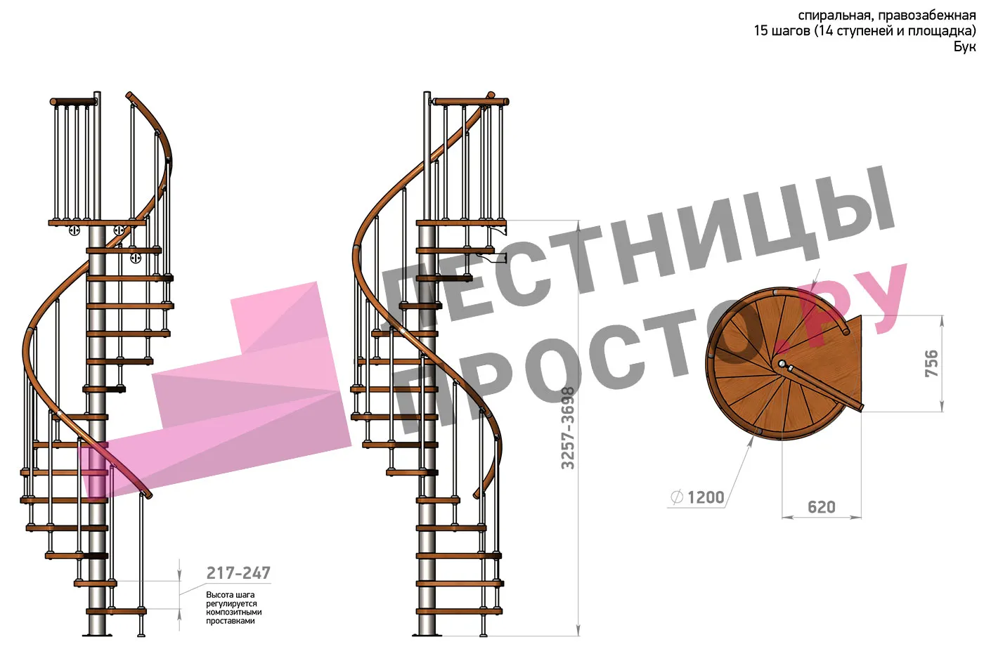 Высота ступеней регулируется с шагом 3 мм. в пределах 217-247 мм., благодаря чему, лестница прекрасно подгоняется под необходимую высоту.