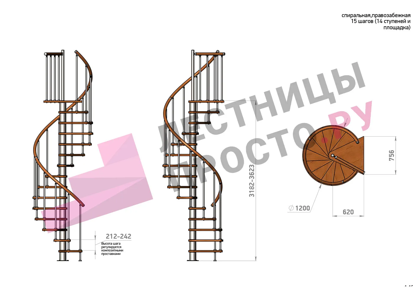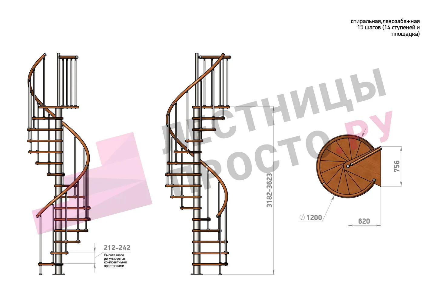| Винтовая лестница Prosto Spiral White D120см, h318.2-362.3 см |