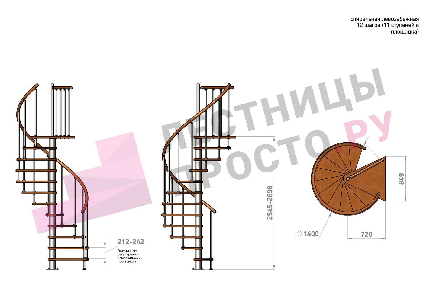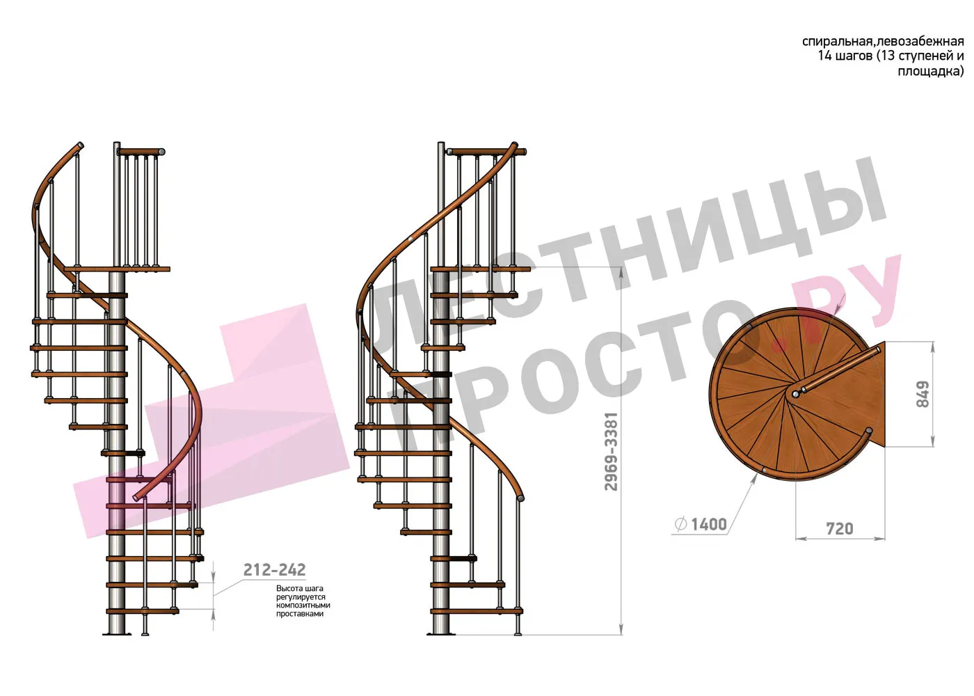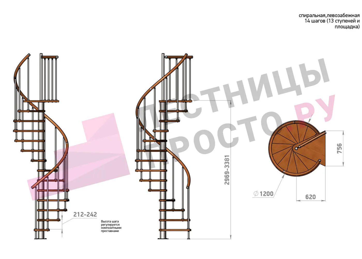 | Винтовая лестница Prosto Spiral White D140см, h254.5-289.8 см |