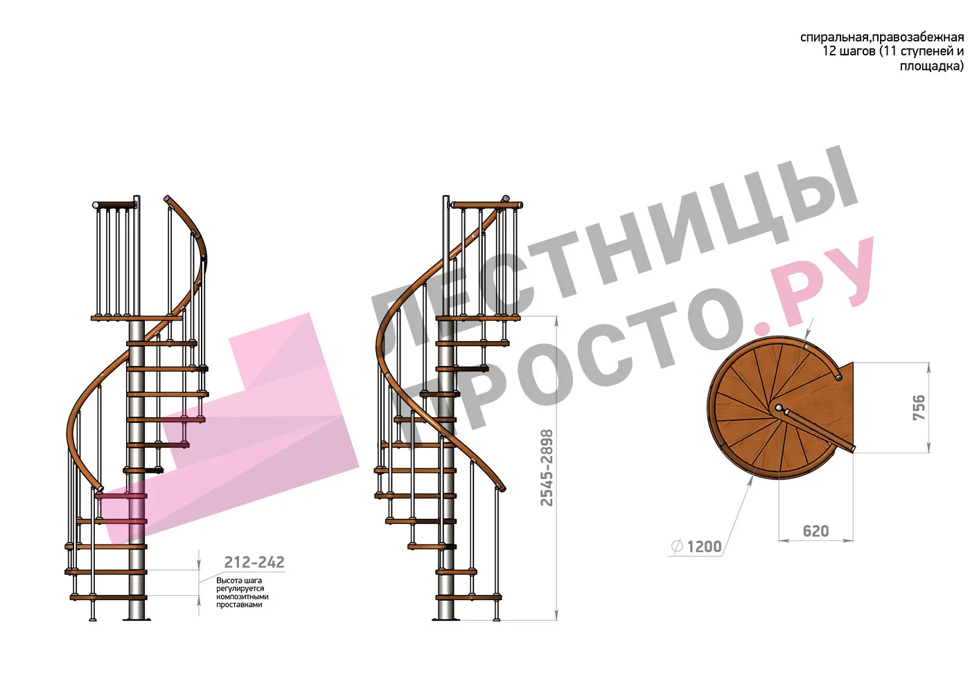| Винтовая лестница Prosto Spiral White D120см, h254.5-289.8 см |