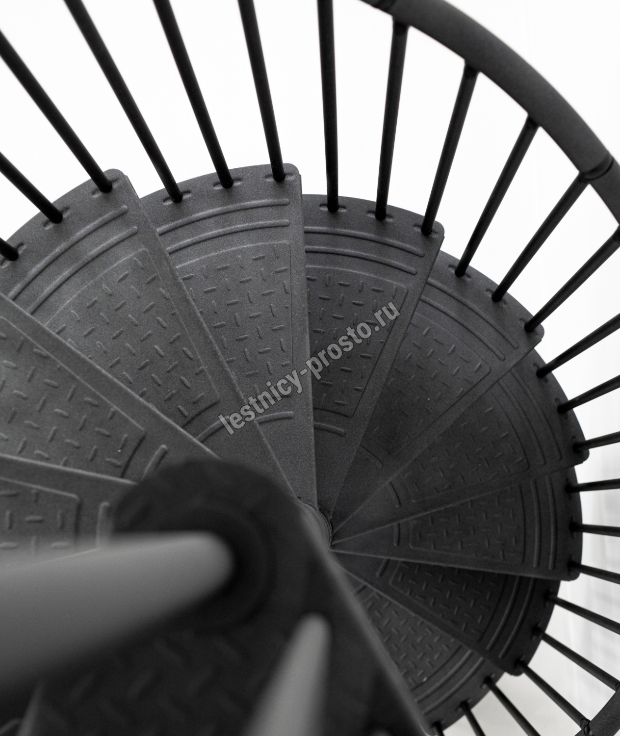 По запросу возможно конфигурирование набора до максимальной высоты 346 см. Все металлические элементы покрыты порошковой краской высочайшего качества графитового цвета, устойчивого к царапинам и механическим повреждениям. Профилированные нескользящие ступени из листового металла в клетку, снабженные небольшим подступенком для большей безопасности. Алюминиевые поручни с высококачественным порошковым покрытием. Напольные перила по запросу, прямые или круглые.