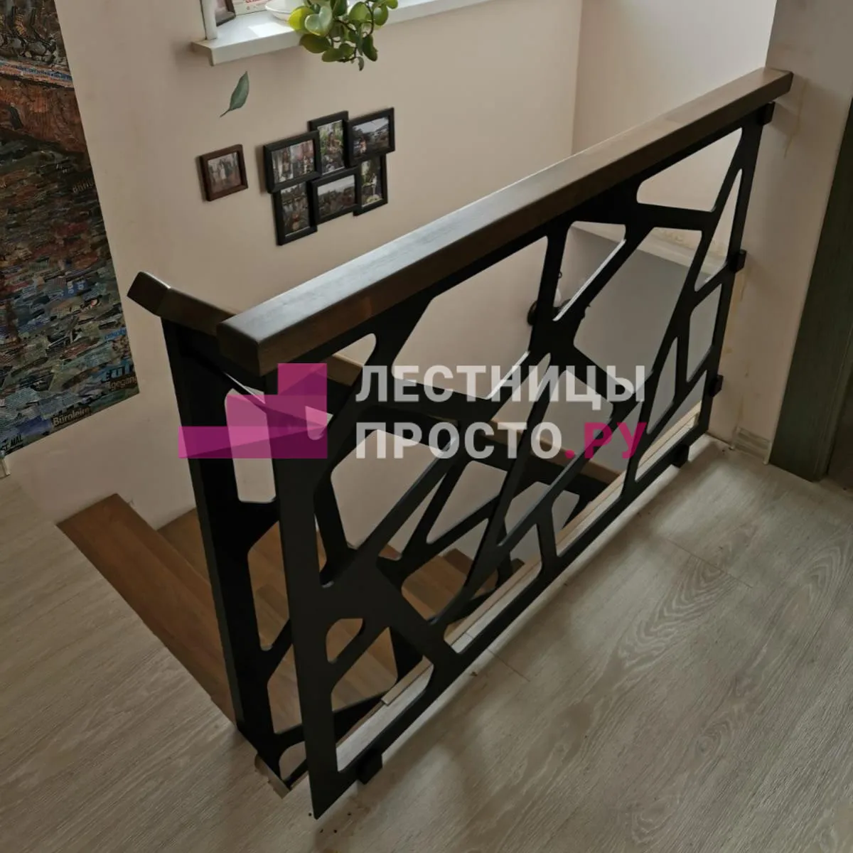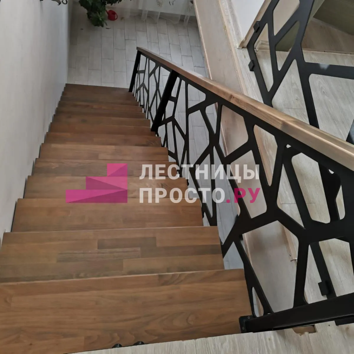 Лестница из ясеня с кованым ограждением по индивидуальному проекту LP-055
